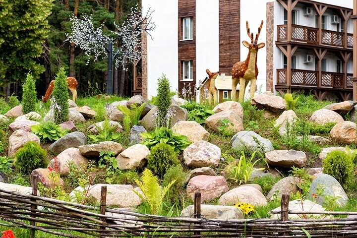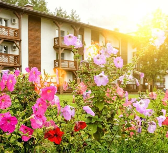 На территории Яхонты Таруса расположены 7 корпусов с номерами различных категорий от стандартного до семейных и люксов. Корпуса без лифтов.